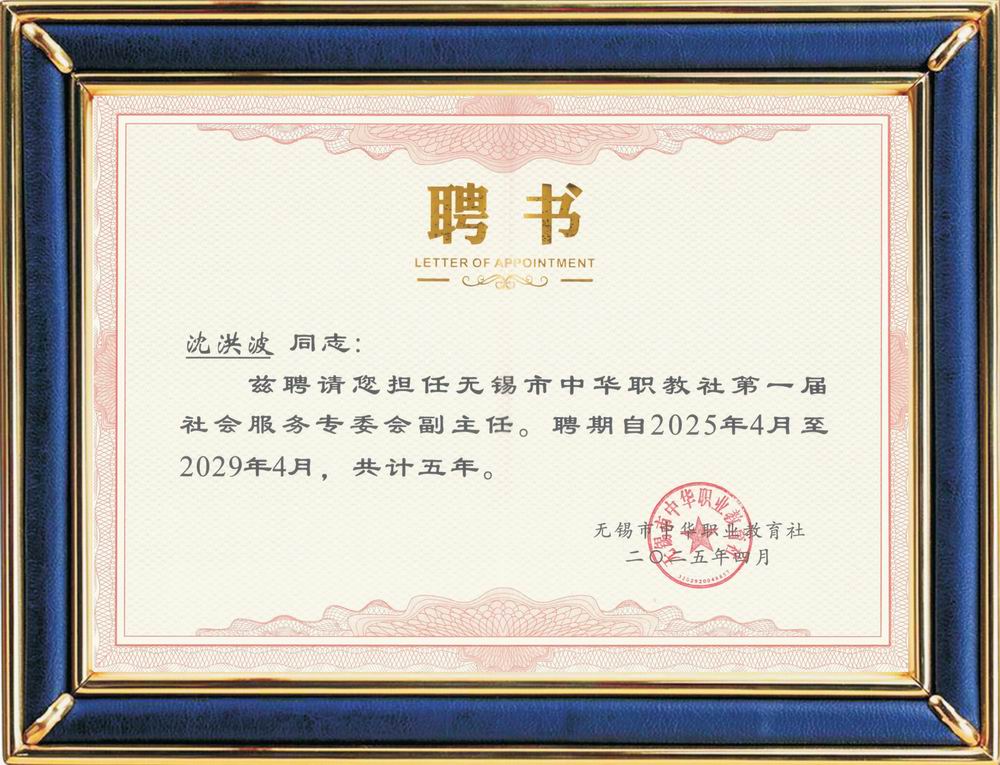 中華職教社社會服務專委會副主任 聘書