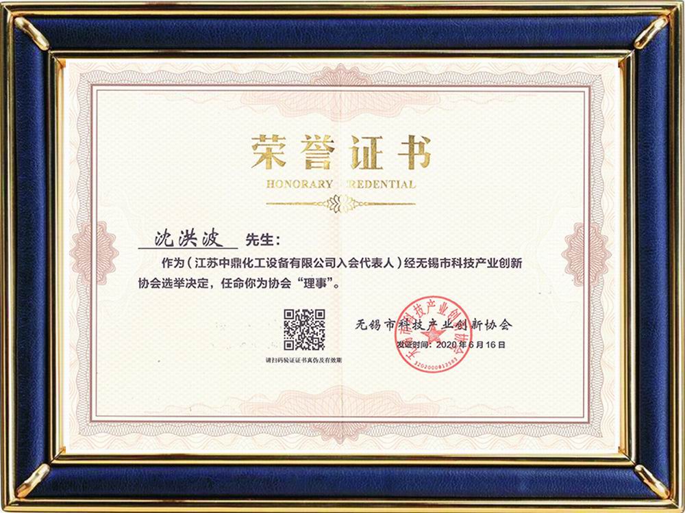 無錫市科技產業創新協會理事單位證書