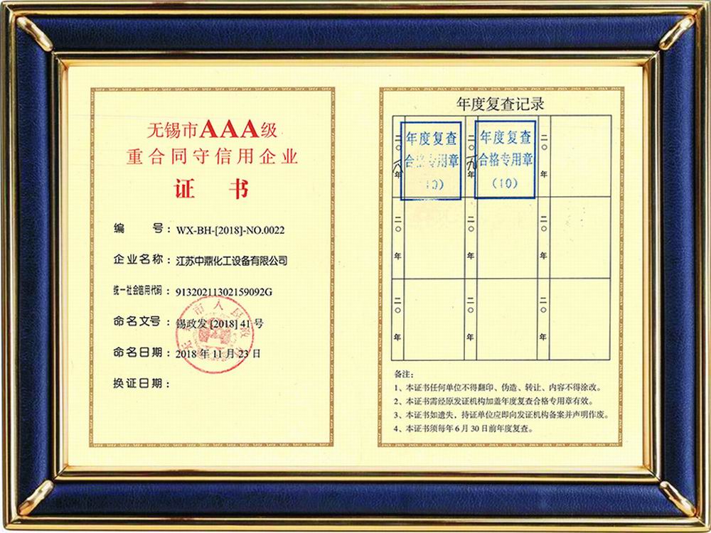 無錫市AAA級重合同守信用企業