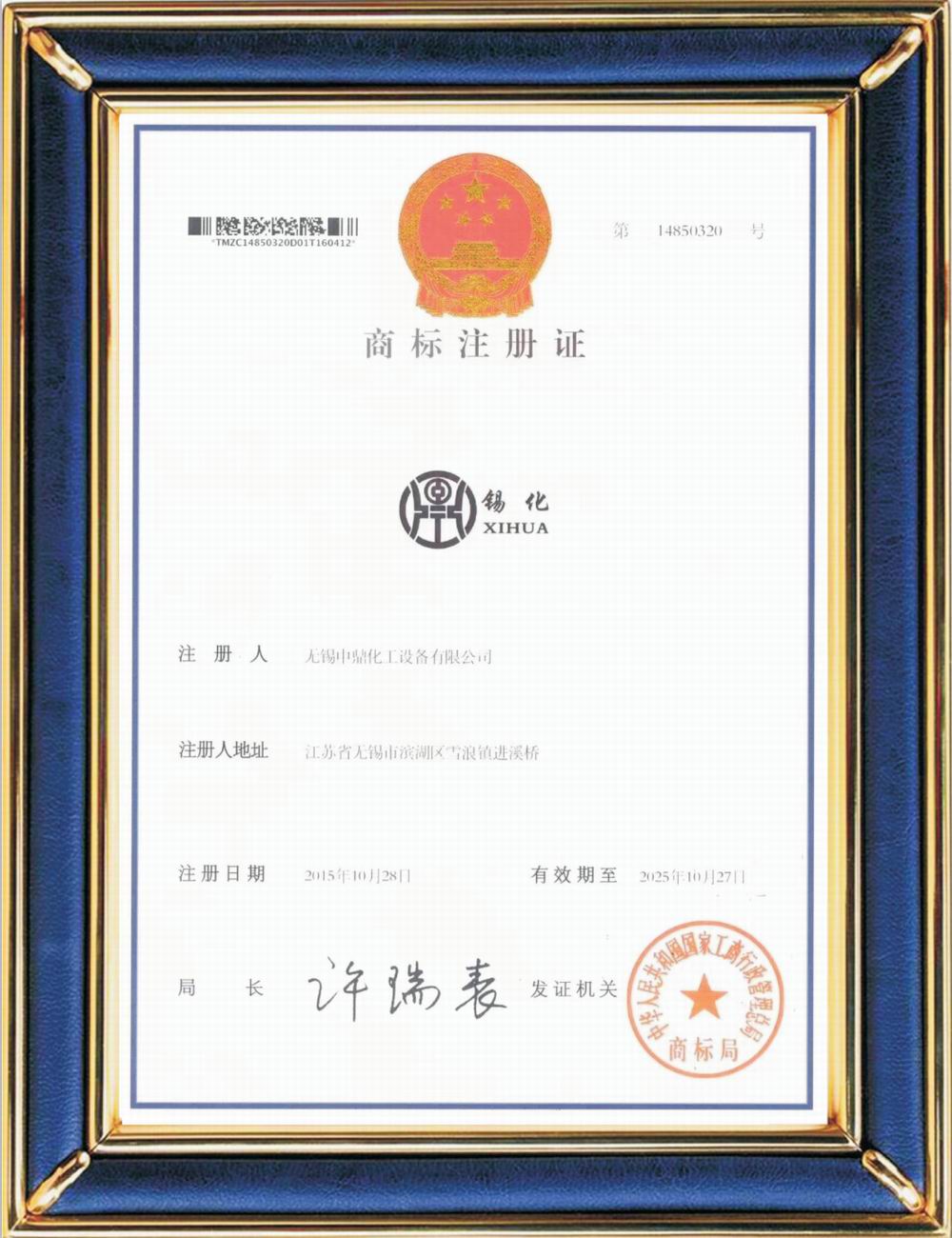 “錫化”組合注冊商標