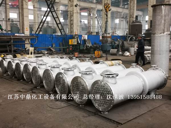 江西某制藥企業(yè) 12臺 100平方不銹鋼翅片式冷凝器(立式)制造現(xiàn)場