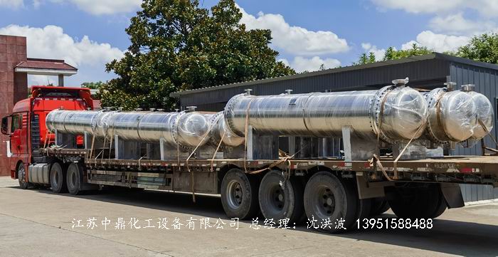 江蘇中鼎化工設備有限公司承接菏澤某普新材料有限公司的34臺列管式換熱器制造過程與發貨現場