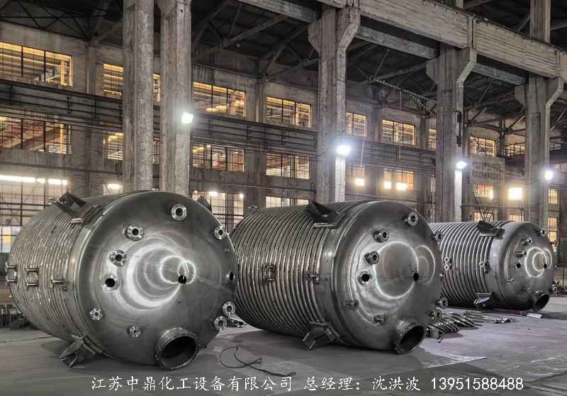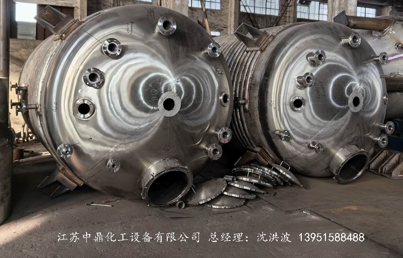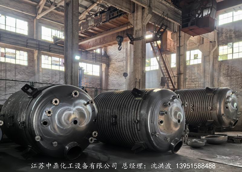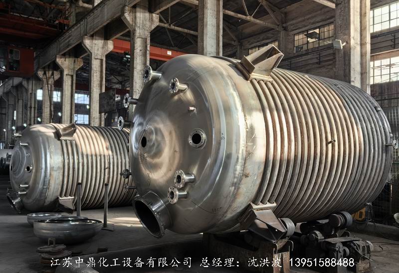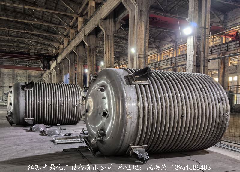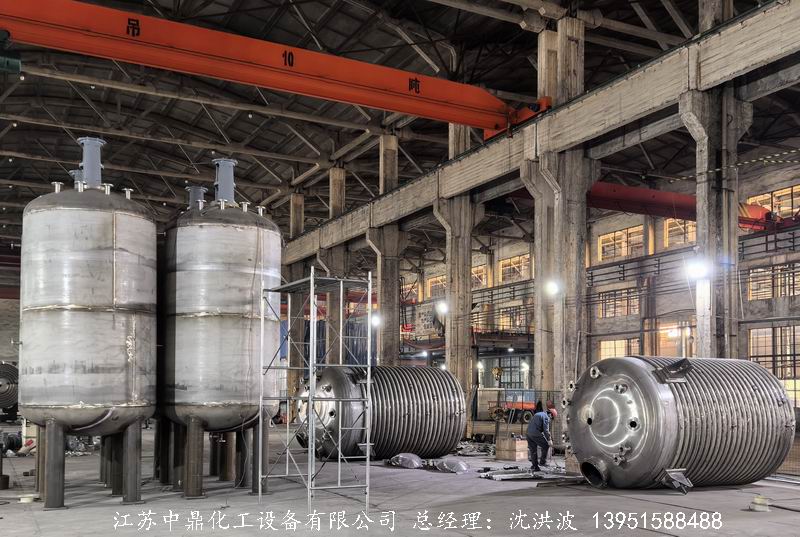 江蘇中鼎化工設備有限公司承接湖北某斯新材料有限公司的10臺15立方外盤半管式不銹鋼反應釜制造過程。